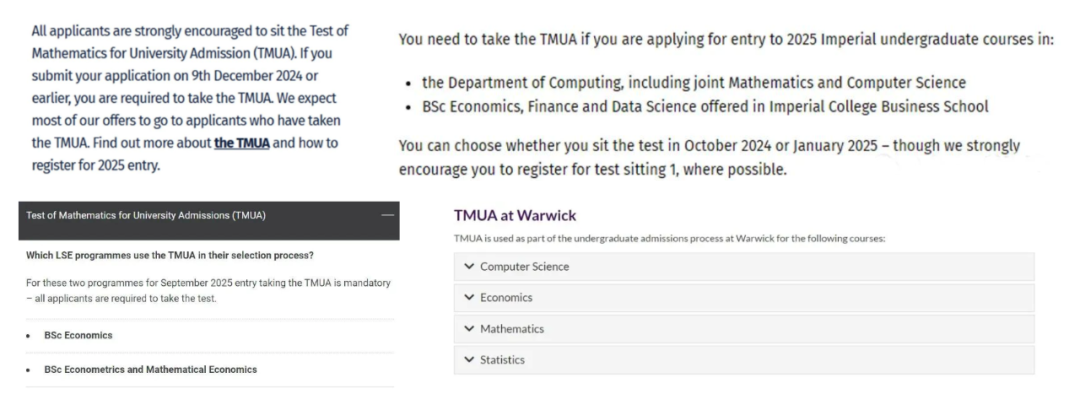 申请剑桥大学、帝国理工学院、伦敦政治经济学院、华威大学、杜伦大学的数学或者数学相关专业、有的学校还包括经济学、计算机科学等专业,都是需要 TMUA 分数的。